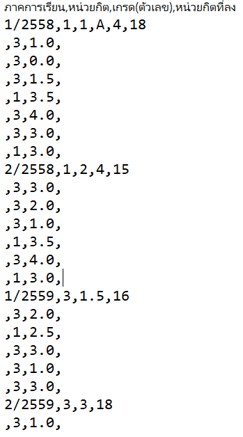 เป็นคำสั่งใช้ในการ append เอาค่าเข้าไปใน list เปล่าๆโดยที่ต้องมีสองค่าก็เพราะว่า บรรทัดแรกที่จะมีปีการศึกษาด้วยนั้นจะทำให้ string มีตำแหน่งที่ไม่ตรงกัน